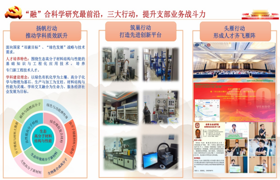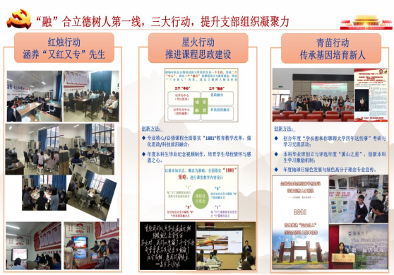 图3 “融”合科学研究最前沿,通过“三大行动”,践行“事业聚才”“筑巢引凤”“真心育才”工作思路,提升支部业务战斗力