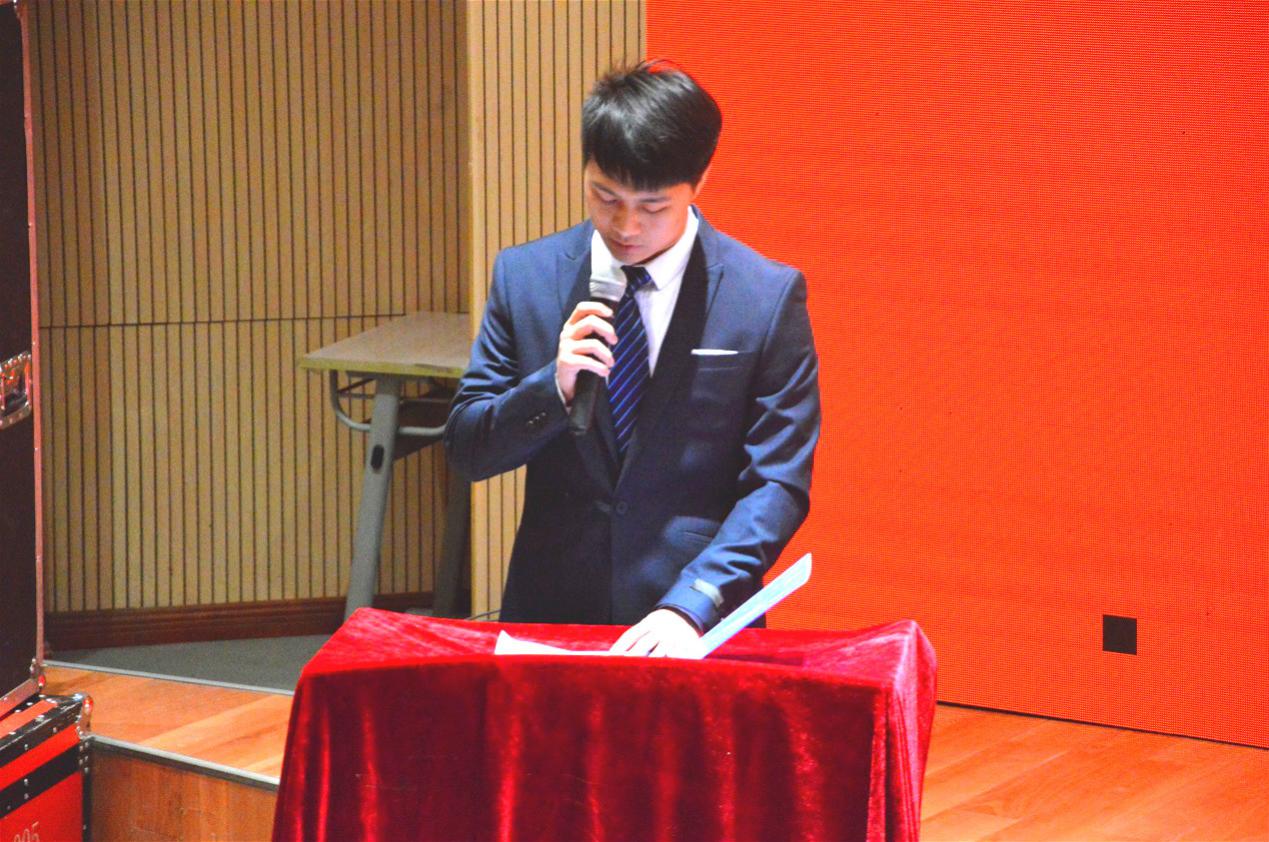 嘹亮的国歌声结束后,大会进行第二项,贵州大学党委研究生工作部张小彬为本次会议致辞。他充分肯定了经济学院对学校研究生工作的支持,感谢了经济学院对研究生文化、学风建设的贡献,并为接下来经济学院研究生的工作提出了三点宝贵意见:一、新形势下研究生干部需要加强思想方面的学习,尤其应当重视和深入学习习近平总书记在全国教育大会上的讲话;二、研究生应当加强学风教育,更加奋发努力,改善学习的氛围和风气,提高学习动力;三、新当选的团委、研究生会干部在保持经济学院优良传统的同时,也需要提高创新意识,为经济学院研究生培养做出更多贡献;最后,他感谢了此次大会的工作人员为大会召开所做的努力与付出,并预祝本次会议取得圆满成功。