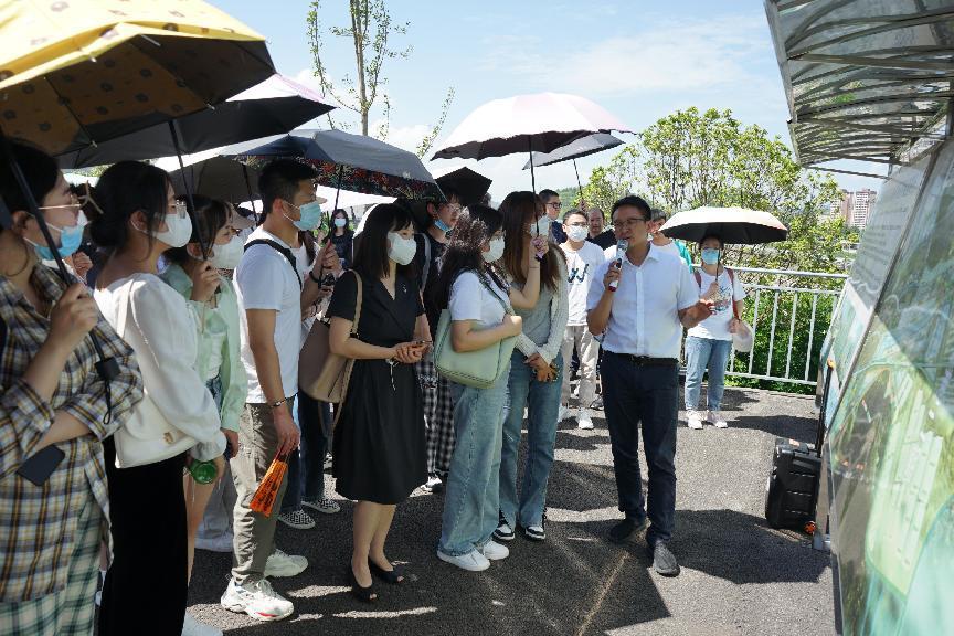 到达目的地后,我们首先观赏了贵阳国际陆港全貌。工程管理部邓仁清部长向大家介绍了贵阳国际陆港整体的项目建设情况以及后期发展规划。