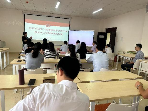 8月28日下午,学院在崇文楼436组织举办了经济学院第三届教师教学技能比赛暨贵州大学青教赛选拔赛。比赛由学院副院长许鹿教授主持,学院党委书记胡环宇同志、学院院长洪名勇教授出席。同时比赛还邀请到公共管理学院杨晶教授、大数据与信息工程学院胡丹副教授、学院各教研室主任担任评委。
