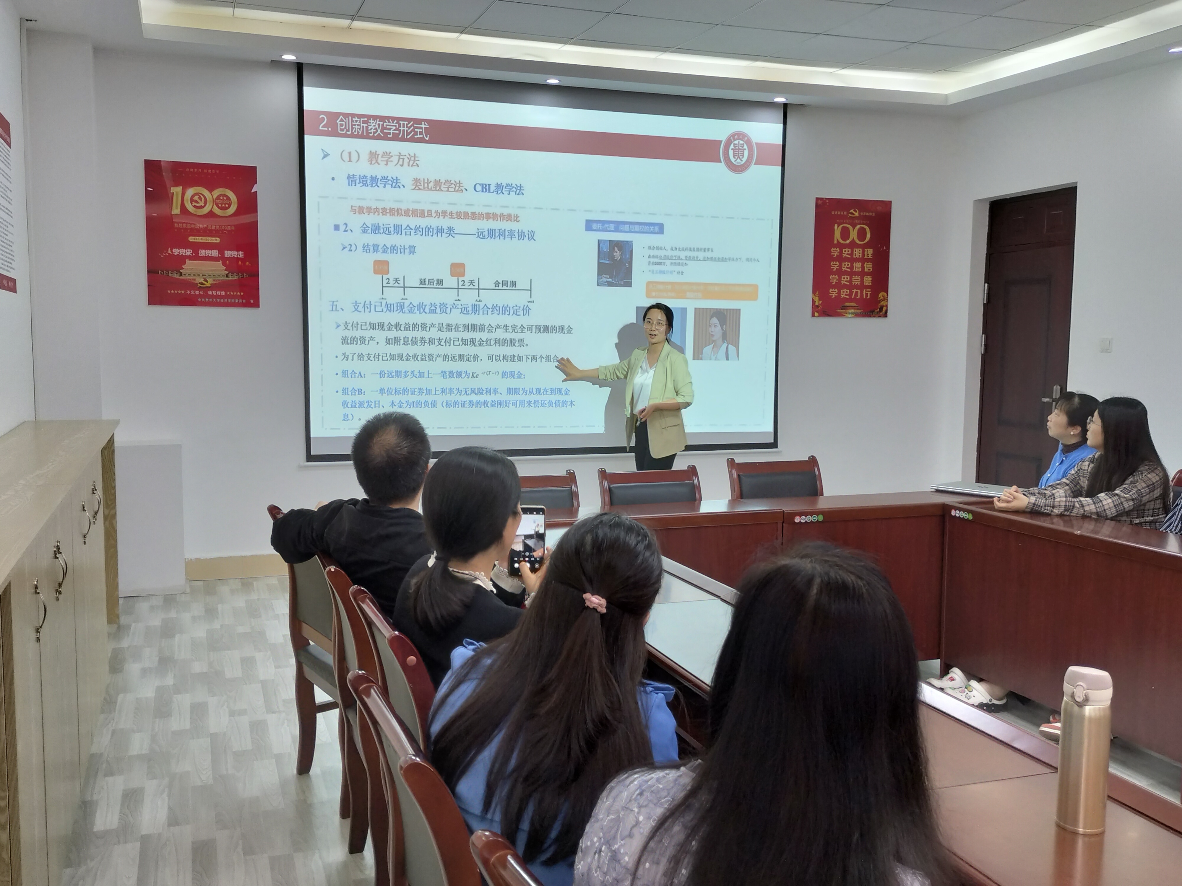最后,各位老师就如何培养金融人才、如何帮助学生树立正确的价值观进行了深入讨论。胡环宇书记指出,学校学院对教学工作赋予最大的支持力度,希望老师们对学科建设及教学进行深入思考,推动本科教育教学改革落地生根。副院长许鹿教授认为,教学过程中应该与时俱进,将现代化的手段运用到教学实践中,一方面可以大大提高教师的工作效率,另一方面可以形成自己的教学案例库。熊晓炼老师认为,一位老师的成长在于勤奋中不断积累教学素材和经验,欢欢老师非常勤奋努力,在寒假期间就在打磨教学内容和课件,其成长是必然结果。熊德斌老师认为,张欢欢老师教学中要注重培养学生的价值观,利用单利复利引导学生思考个人成长的案例值得大家学习,并分享自己在指导学生时,带领学生深入基层实地调研贵州省黄牛产业发展,并思考公司人力资本与股权结构设计之间的联系。熊老师认为教学是一门艺术,如何将知识传输到学生的脑中形成智慧需要老师们深入思考,在平时积极积累素材才能创造性组合。
