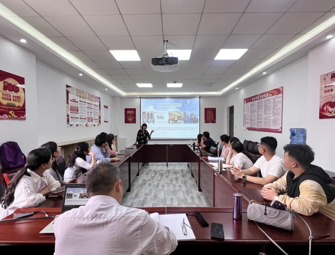 梅雅洁老师紧密结合热点新闻、金融轶事和国际贸易实例,对《国际金融学》一价定律一节展开精彩的双语教学展示。