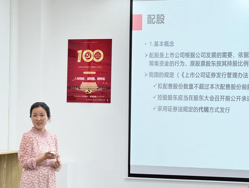 青年教师李爽开门见山地引入投资银行、商业银行与投资者之间的关系,明晰本次课程重难点,提醒师生在金融领域要与时俱进,不断更新学习与教学。将投资银行学教材内容与市场实际、法律条款结合,将课程教学与个人和学生的调查研究、论文选题和就业指导结合。融多维度于课堂,强调对学生的创新性、挑战性引导。
