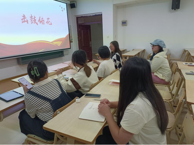击鼓传花环节,同学们积极参与,通过游戏的形式,增加了活动的趣味性,同时也加深了同学们之间的互动和交流,极大活跃了本次学习活动的氛围。