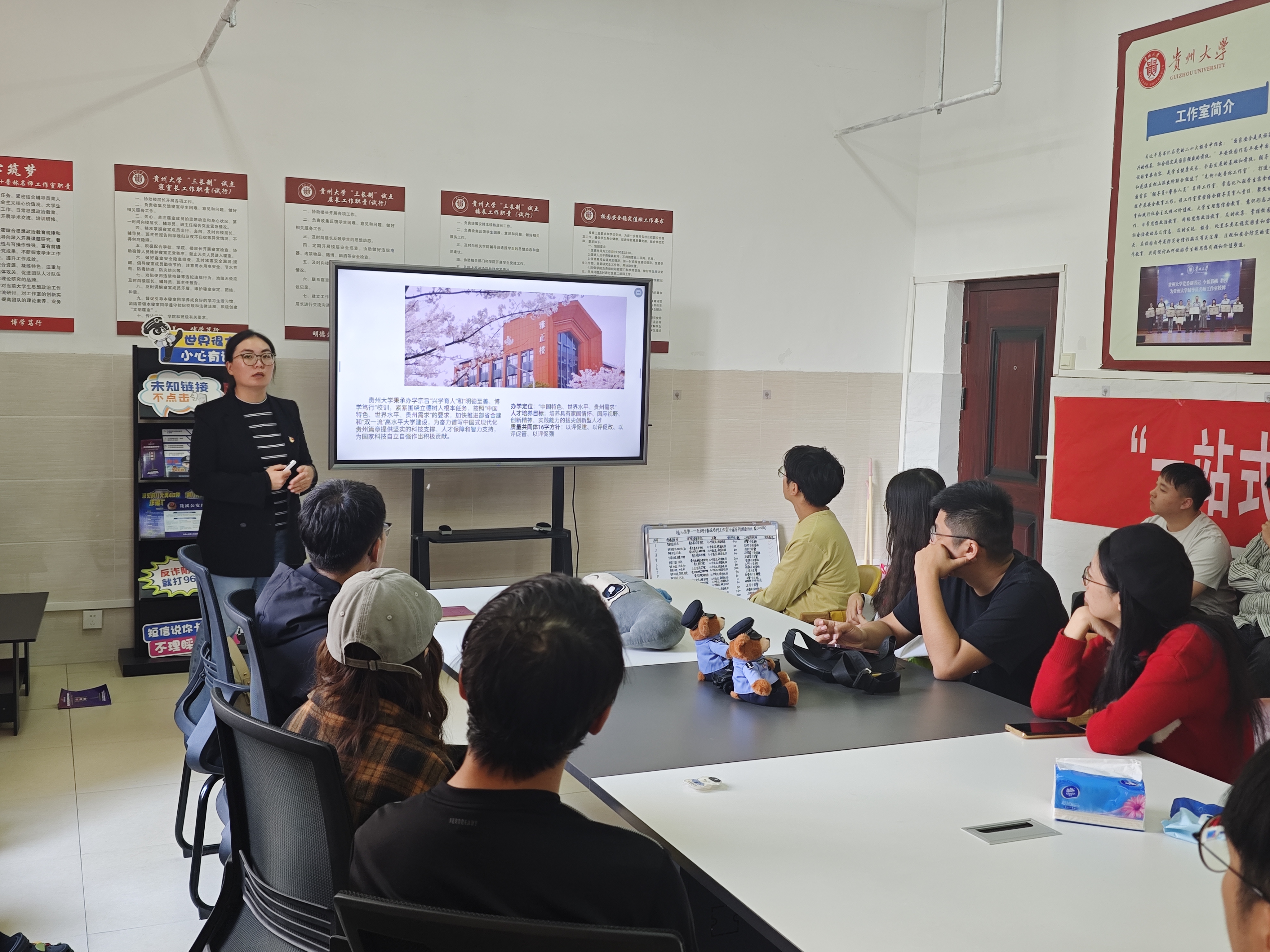 11月13日,经济学院党委副书记向秋丹以“深入学习贯彻党的二十届三中全会精神---在实习实践中砥砺实干”为主题,结合党的百年奋斗史,在贵州大学“一站式”学生社区为学生党员上了一堂生动而又深入的微党课。