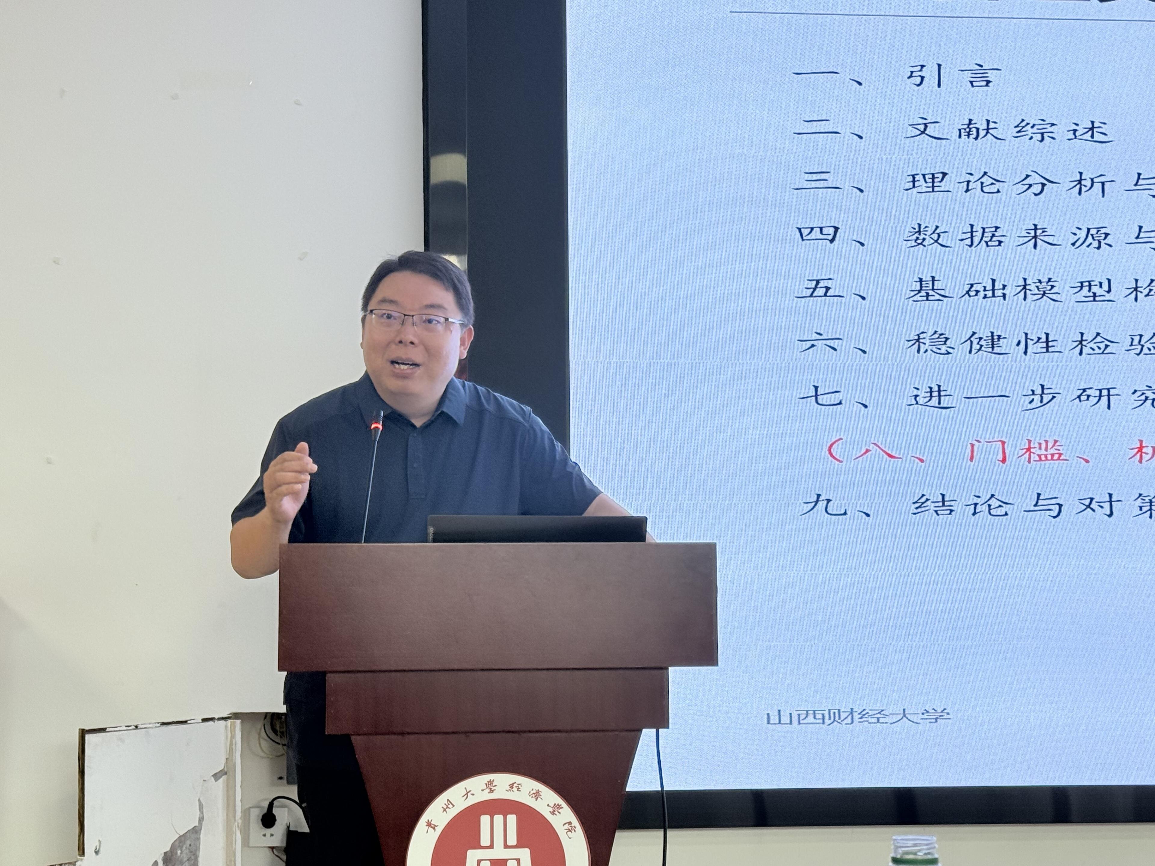 2025年7月8日,为助力师生精准掌握论文选题要点,提升学术论文投稿成功率,山西财经大学期刊社副社长马克卫教授受邀在崇文楼532报告厅做主题为“期刊选稿视角下的经济学论文选题要点”的专题讲座。本次讲座由经济学院副院长朱满德教授主持,110余名师生参与,现场学术氛围浓厚。