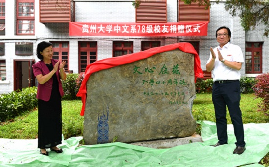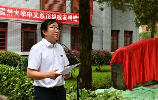 省人大常委会原党组书记、副主任、贵州大学原党委书记龙超云等中文系78级校友代表58人,徐达、宋秀丽、张闻玉、房开江等十余位老教师代表,校党委书记李建军,常务副校长王红蕾,党委办公室、校长办公室、对外合作处(校友总会办公室)、校史馆、文学与传媒学院负责人及相关老师、学生参加了仪式。