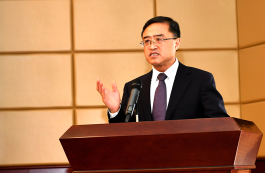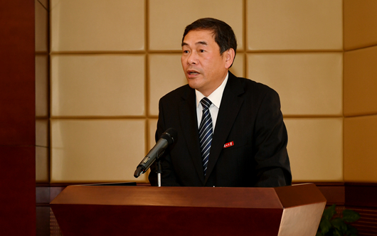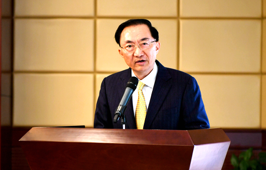 香港智华基金有限公司主席林高演先生讲话。他说,来到贵州大学,看到朝气蓬勃的学生和美丽的校园,感到非常高兴。当得知在贵州的善举得到了良好、显著的变化时,他非常感动。他希望,当代社会上互帮互助的大爱关怀和自强不息的精神,能够发扬光大,为完成伟大复兴中国梦贡献力量。