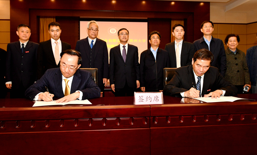 在省人大常委会副主任、秘书长陈鸣明、副省长魏国楠和爱心人士、师生代表的见证下,林高演与陈坚共同签订了捐赠协议。