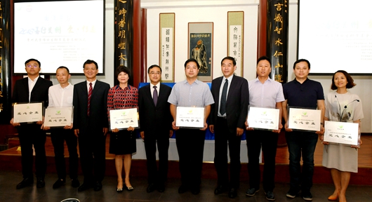 陈鸣明为7家爱心企业授牌,并宣布“爱•传递”贵州大学博士生助学基金正式启动。