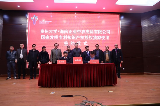会上,宋宝安、王赞鄂分别代表贵州大学与海南正业中农高科有限公司进行了国家发明专利授权独家使用签约仪式。我校将“香草硫缩病醚”专利权授权海南正业中农高科有限公司独家使用,并与其共同进行抗病毒剂产品产业化开发。