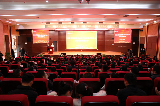 贵大新闻网讯 12月1日上午,贵州大学校友总会第三次校友代表大会、校友总会理事会换届大会暨校友捐赠与专利转让仪式在贤正楼报告厅举行。特邀嘉宾、特邀校友代表、校领导、贵州大学校友总会第三届理事会拟任理事、校友代表、合作企业代表等300余人参加大会。