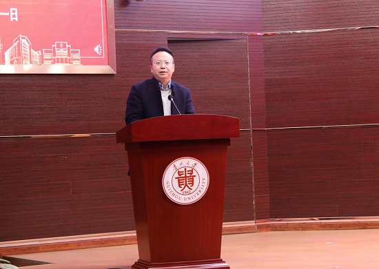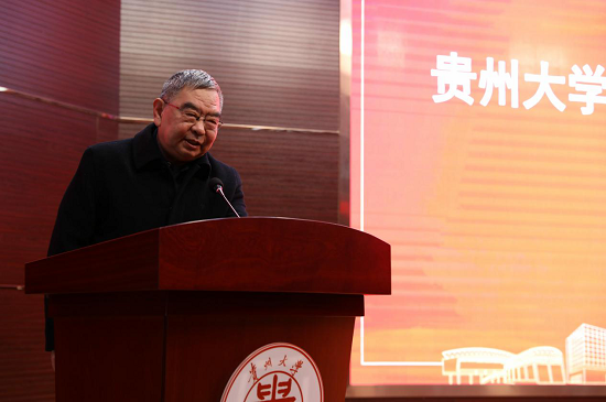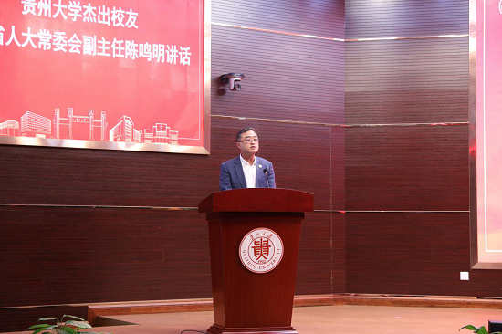 陈鸣明讲话。他表示,再次与大家相聚母校,感到非常高兴。近年来,贵州大学综合实力大幅提升,社会影响不断扩大,服务能力显著增强。为了学校持续健康的发展,贵州大学要提高站位,引领贵州高等教育高质量发展,扎根贵州,深度融入国家与区域发展战略,不断提升综合实力和社会影响力。希望各界朋友一如既往关心支持贵州教育事业!希望母校发展取得更大成绩!