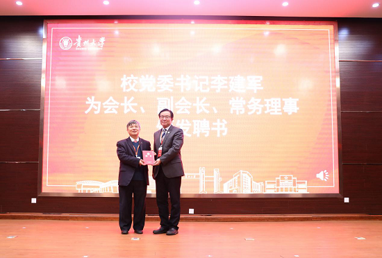校党委书记李建军分别为新当选会长、副会长、常务理事颁发聘书。