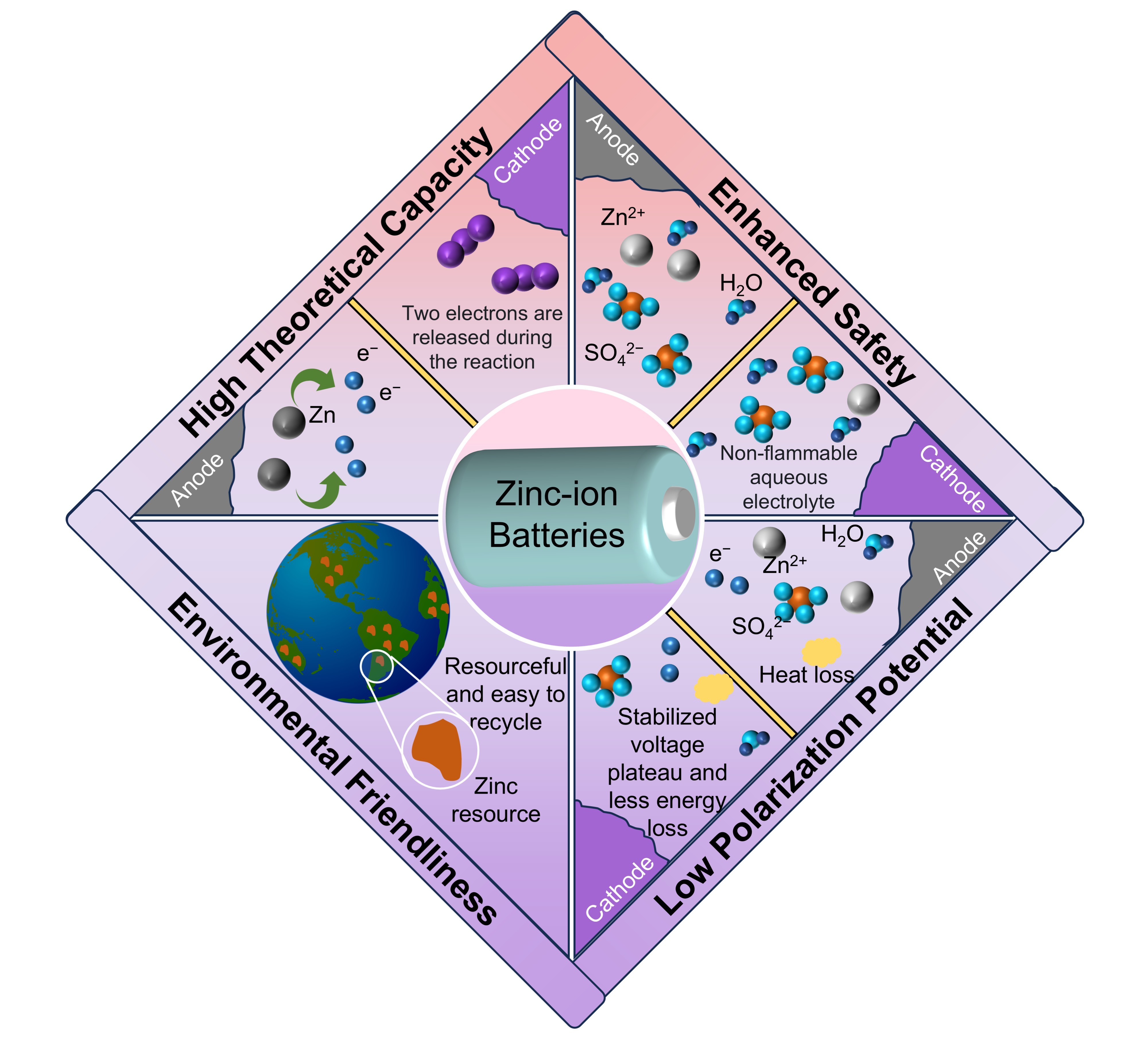 本文重点介绍了水系锌碘电池发展的进展与挑战,强调了从传统双电子体系向先进多电子构型的转变。锌碘电池因其原材料丰富、环境可持续性和高理论容量而具有广阔前景。然而,多碘化物穿梭效应和锌枝晶形成等问题阻碍了其性能和稳定性。近期在极性材料、催化剂、隔膜和碘锚定化合物方面的进展旨在延长循环寿命、提高比容量和放电电压。利用更高碘氧化态的多电子锌碘电池可改善能量密度和效率,卤化物离子和有机分子等创新技术可稳定高价碘物种以增强电子转移。未来方向包括官能团工程、碘物种稳定化、材料优化和人工智能辅助集成,以提高能量密度、使用寿命和成本效益,适用于大规模和便携式应用