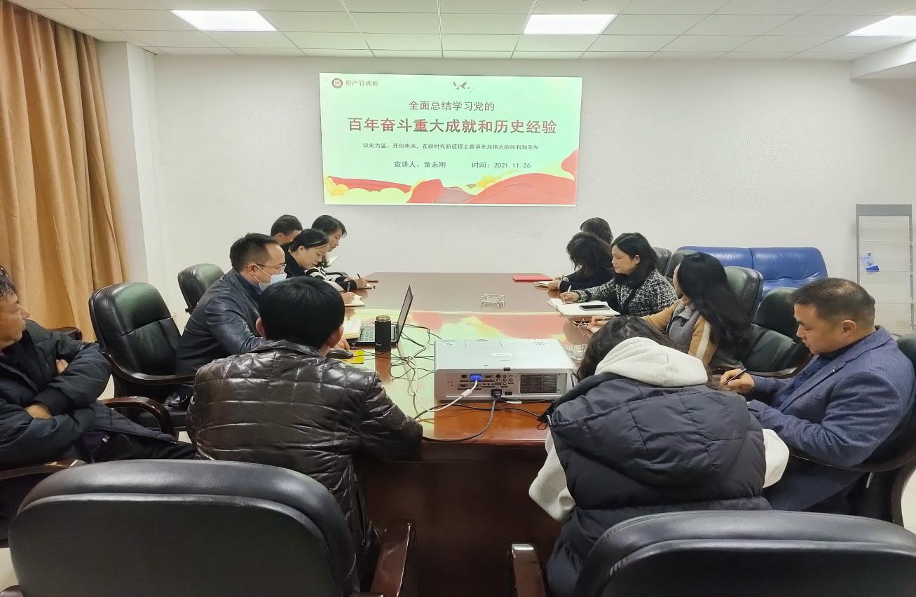2021年11月26日上午,资产管理处党支部在贤正2号楼615会议室开展党的十九届六中全会精神专题学习,全体党员同志参加,会议由支部书记董永刚主持。