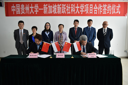 On April 17th, the signing ceremony of cooperation between GZU and Singapore University of Social Science (SUSS) was held in Room 403 at the College of Continuing Education. Zhang Qin, Vice President of GZU, and Xu Jizong, Executive Vice President of SUSS, jointly signed the agreement.