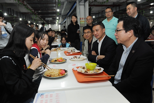 After talking with the students, Li Jianjun stressed that the dinning hall should provide a wider variety of foods to meet the diverse eating habits and needs of the student body, which includes students from northern and southern China. Taking the students’ opinions into consideration, he noted that relevant sectors should pay heed to the following issues: 1) the canteen sets a minimum consumption requirement at certain stores; 2) the canteen charges slightly higher than local stores, 3) if a student loses their meal card, the balance of the replacement card is set to zero; and 4) the floor gets rather slippery inside the dinning hall on rainy days. He hopes that relevant authorities will deal with these issues in a bid to create a desirable learning and living environment for the students.