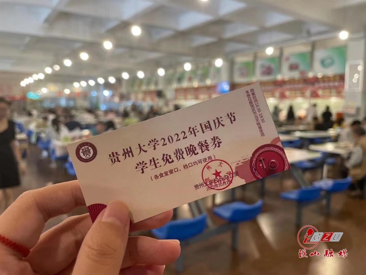 On October 1, free dinner coupons were issued to all students and faculties on the West, East and South campuses of Guizhou University to celebrate the National Day.