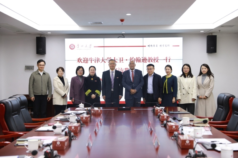 On April 2, Professor David Johnson from the University of Oxford visited Guizhou University along with his delegation. Prior to a roundtable discussion, Professor Johnson and his team were welcomed by Yang Wei, Party Secretary of Guizhou University, and Vice President Wang Jinrong. Representatives from relevant departments and colleges also attended the meeting.