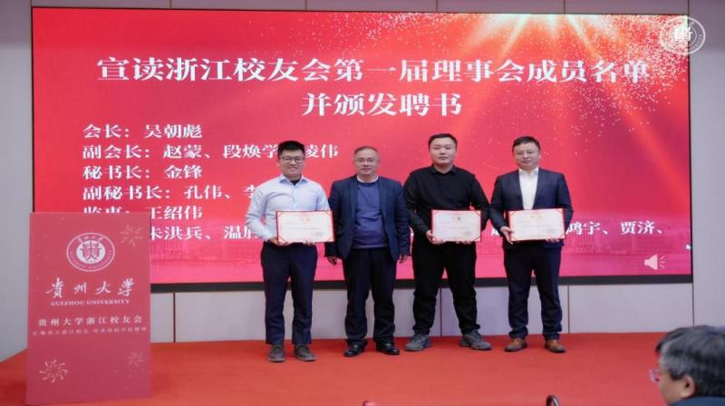 At the event, GZU and its alumi federation represenatives presented appointment letters to the new board. Vice President Li also unveiled the plaque for the Zhejiang branch of the Guizhou University Alumni Federation.