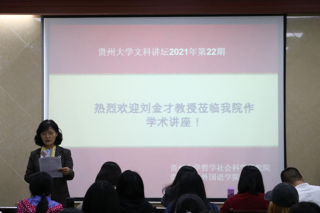 2021年5月20日下午14:30分,由贵州大学哲学社会科学研究院主办,外国语学院承办的贵州大学2021年第22期文科讲坛在东校区外国语学院201教室顺利举行。本次讲坛特邀北京大学博士生导师、中华日本哲学会顾问、国际中江藤树思想学会会长刘金才教授作题为“中国‘日本学’学术话语的建构”的学术讲座。讲座由外国语学院副院长王晓梅教授主持。