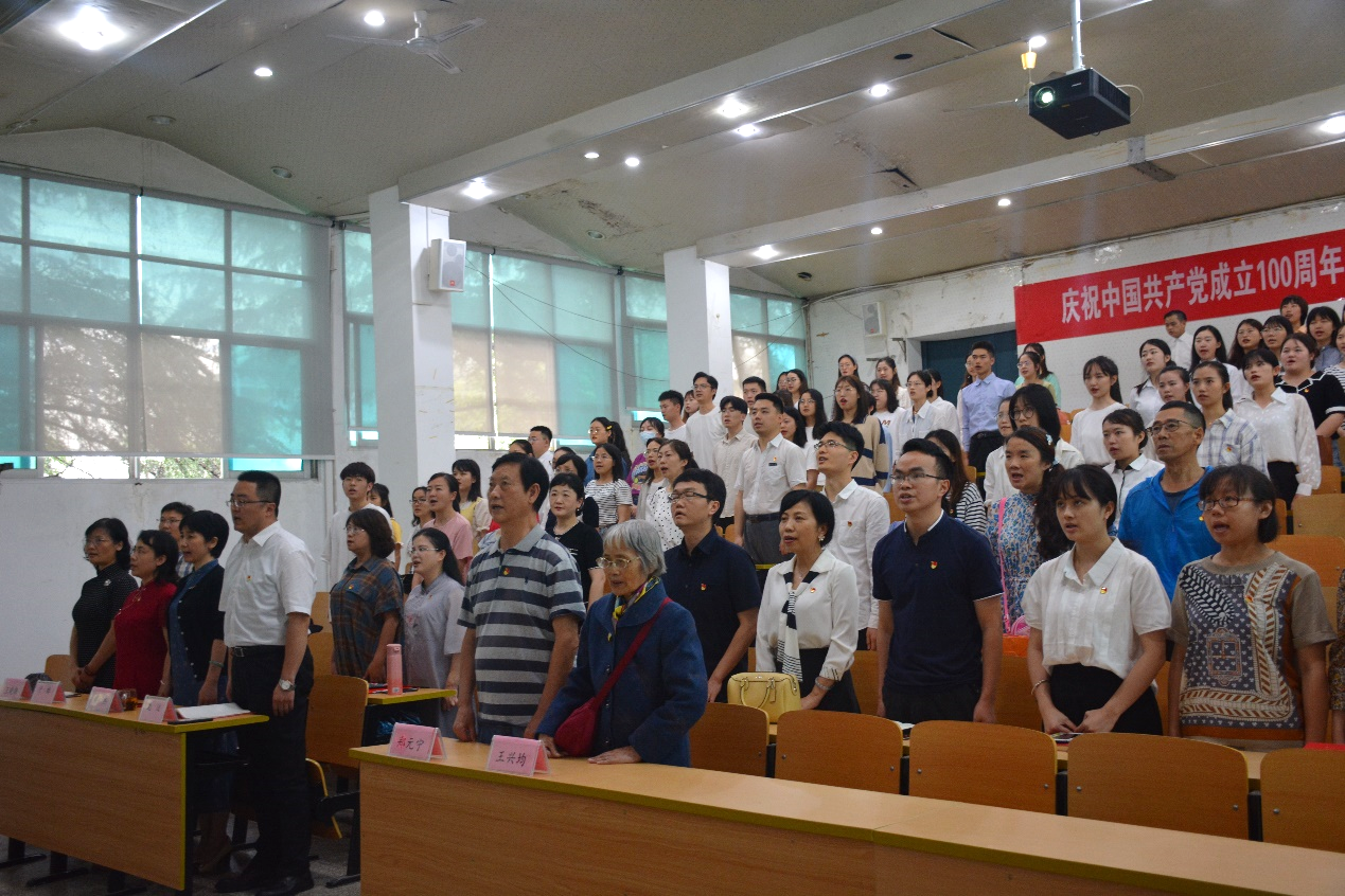 外国语学院党政办讯6月29日,我院在外语楼212DT阶梯教室召开庆祝中国共产党成立100周年暨“七一”表彰大会。贵州大学原外语系党总支书记、校党委原副书记郑元宁同志,贵州大学原外语系基础英语教研室主任王兴均同志,外国语学院党委书记龙汶同志,党委副书记、院长周杰同志,党委委员、副院长宁梅同志,副院长王晓梅以及新老党员代表。会议由杨莉萍主持。