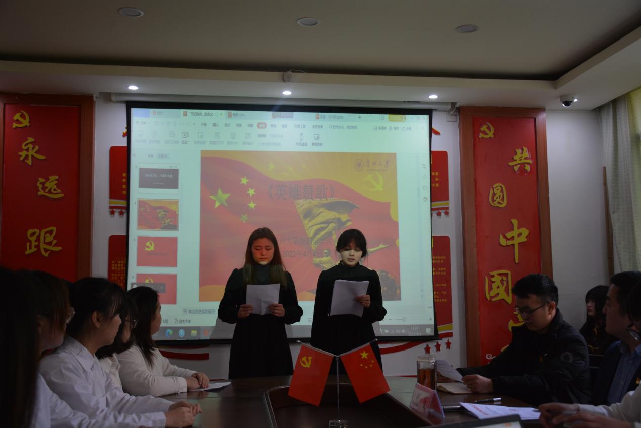 座谈会前,大家通过网上“云祭扫”的方式缅怀英烈,所有与会人员向先烈三鞠躬,深切缅怀革命先烈的丰功伟绩,追忆革命英雄的光辉历程。接着,2020级汉语国际教育专业的任丽娟、梅雪进行了诗歌朗诵,讴歌革命先烈英勇无畏的精神,赞扬革命英雄坚毅果敢的气概。