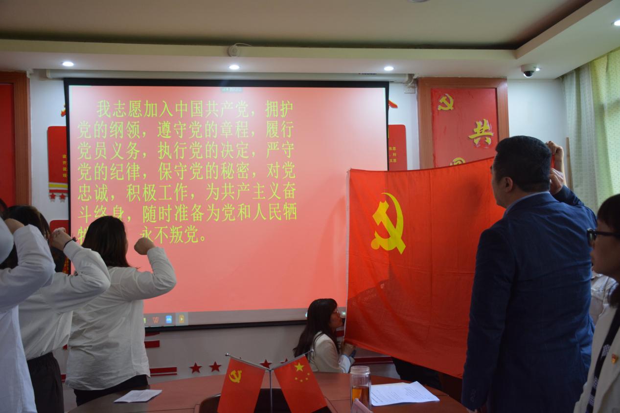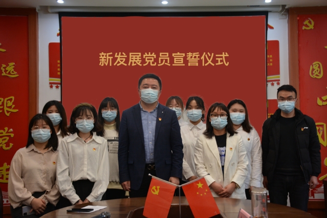 随后,龙汶书记宣读了《中共贵州大学外国语学院委员会对同意接收陈兴兴等同志为中共预备党员的批复》文件。韦伊老师主持举行了中共预备党员宣誓仪式,由龙汶书记领誓并为中共预备党员们佩戴党徽。