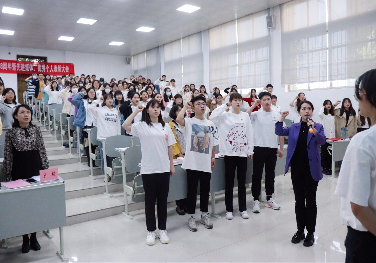 院团委书记陈翌奇老师带领同学们重温入团誓词