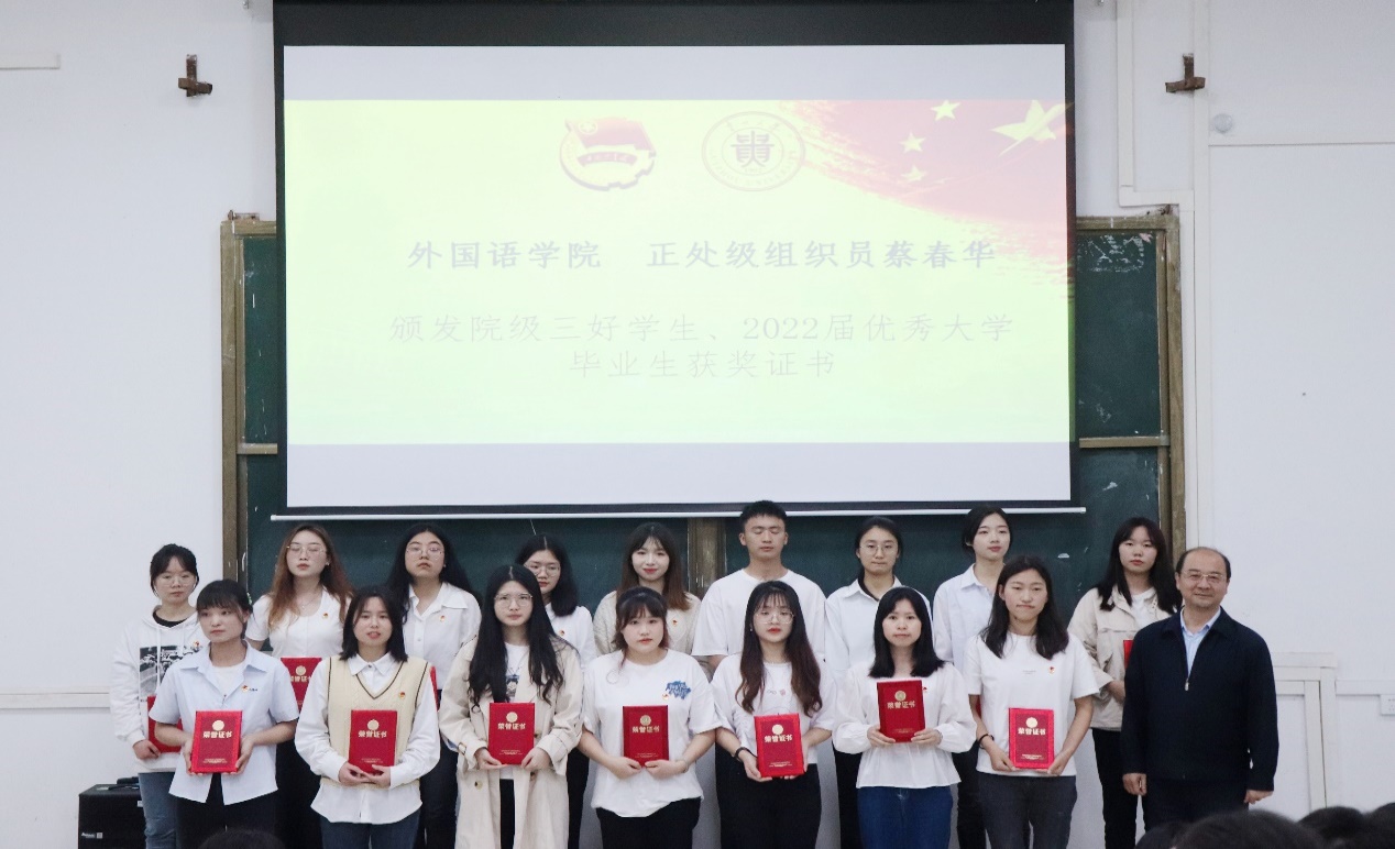 正处级组织员蔡春华颁发院级三好学生、2022届优秀大学毕业生获奖证书