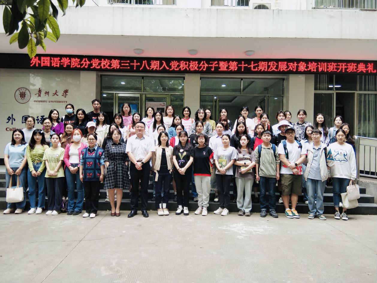 4月18日中午13时,外国语学院分党校第三十八期入党积极分子暨第十七期发展对象培训班开班典礼在东校区外语楼外阶二教室举行。