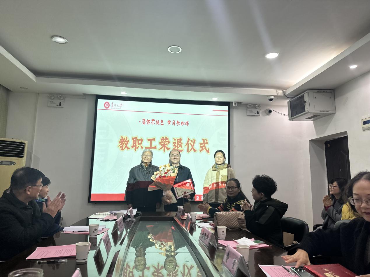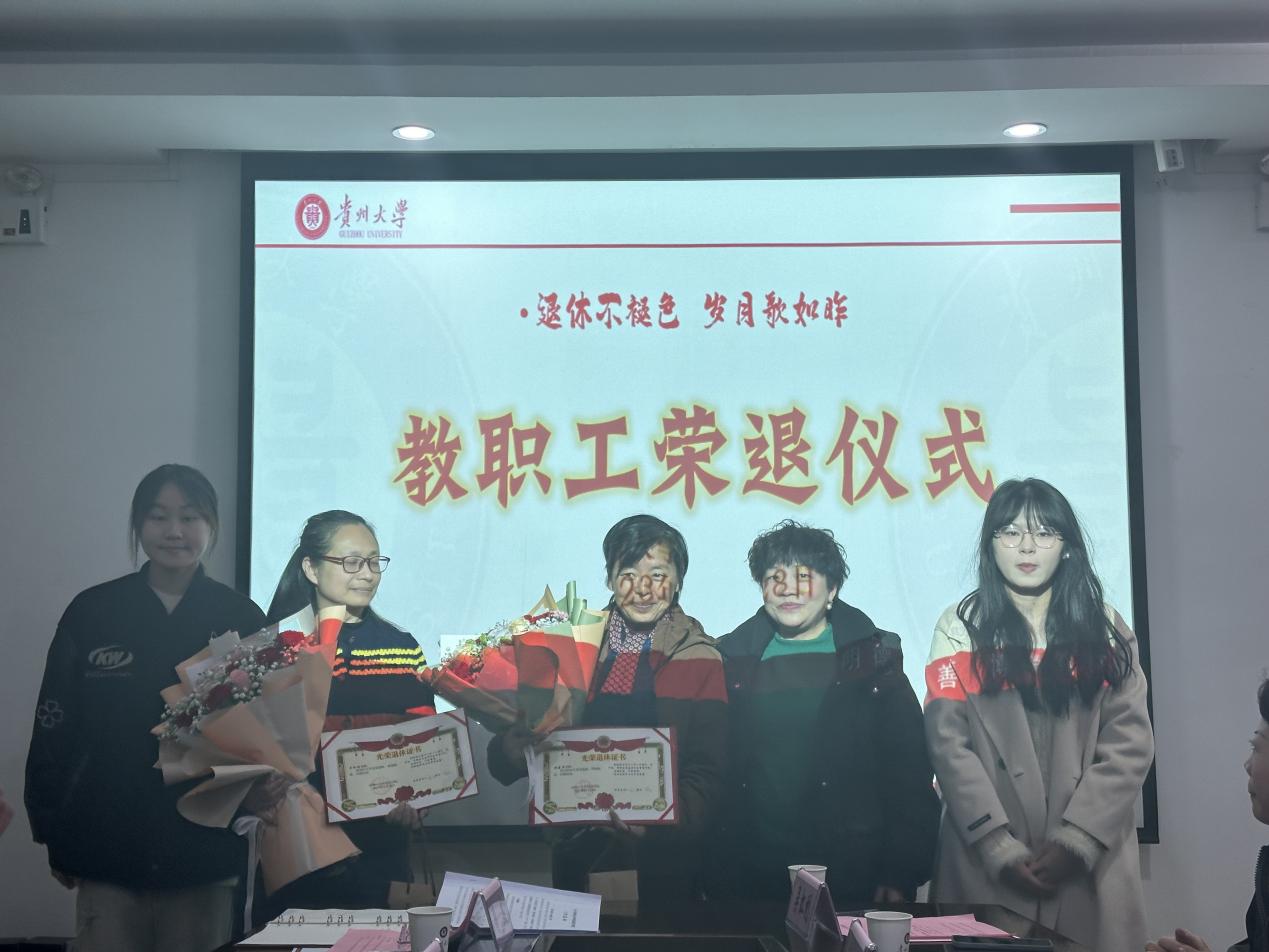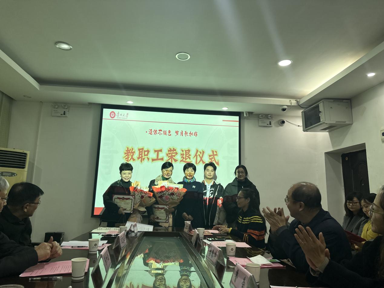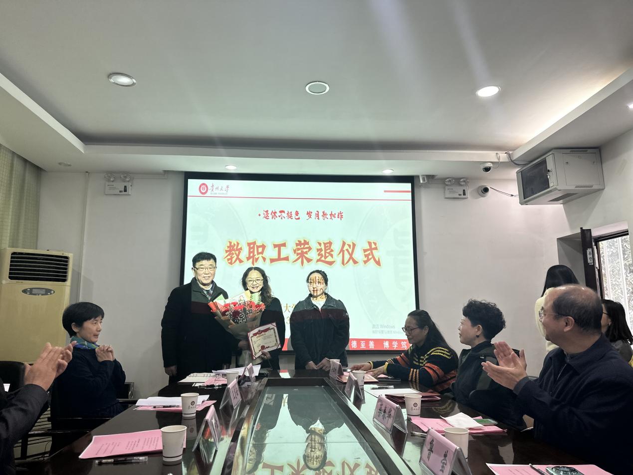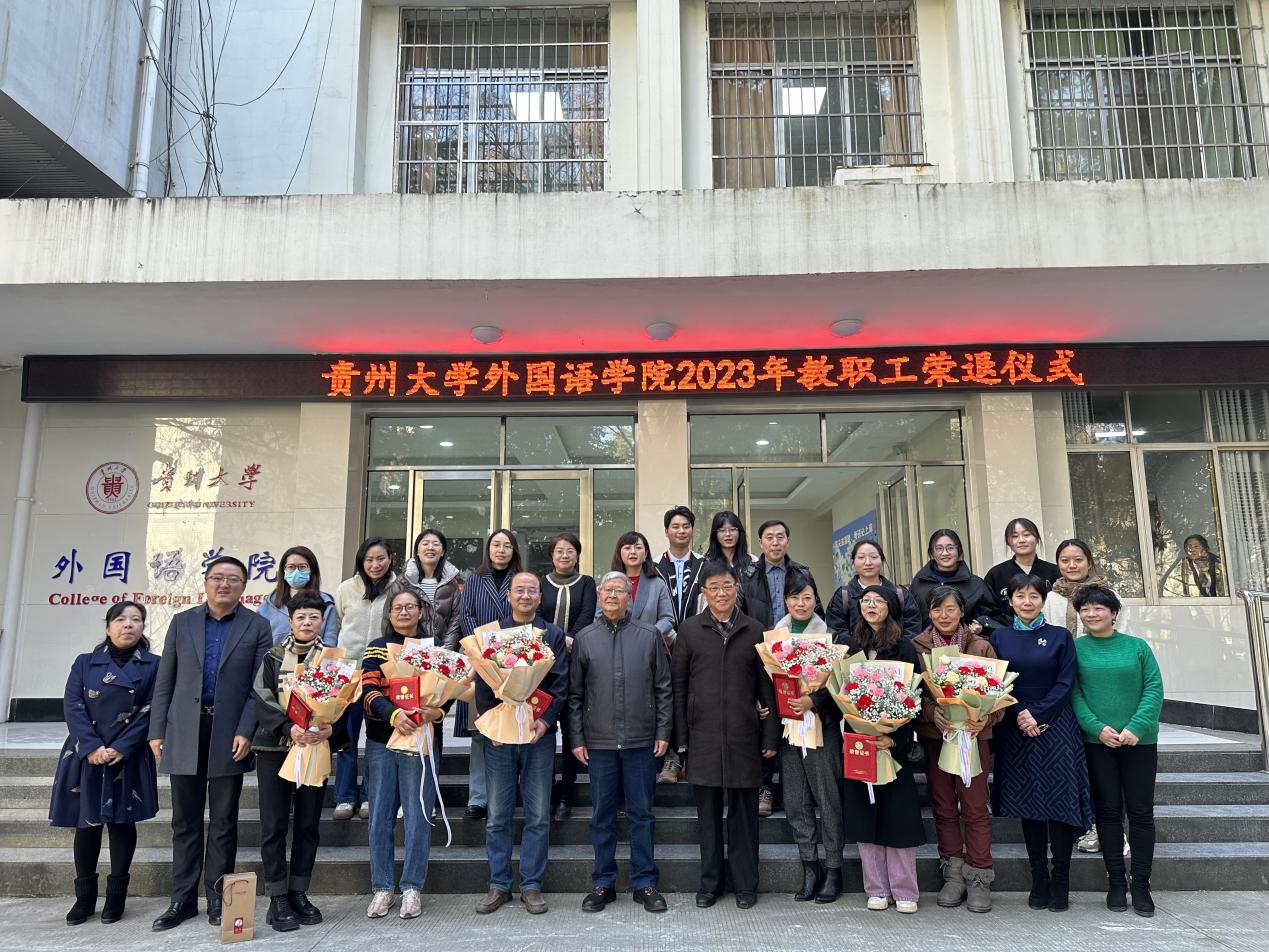 2023年12月28日下午,薪火传承守初心、凝心聚力担使命,外国语学院举行退休教职工荣退仪式。贵州大学原助理巡视员、外国语学院原党委书记陈加法,外国语学院原院长王志云,外国语学院党委书记兼分工会主席龙汶、院长周杰,外国语学院大外部主任、分工会副主席邓耘出席仪式,2023年退休教职工蔡春华、鲁莹、刘绯、黄奕、吴红利、杨建萍,各科室、系(教研室)负责人、工会小组长,2023年新进教师、教师代表、学生代表参会。会议由龙汶主持。