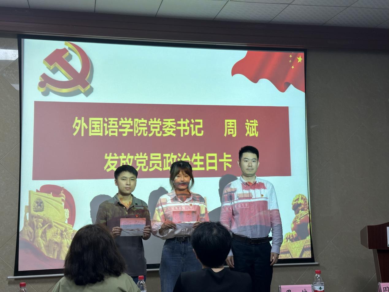 最后,周斌发放党员政治生日卡并讲话。他指出,入党宣誓是每一位新党员政治生活中的重大事件,标志着正式成为中国共产党的一员,肩负着党员的光荣职责和神圣使命。通过宣誓,新党员表明自己对党的信仰,对党的忠诚和对党的事业的坚定承诺。希望新发展党员牢记今天的誓言,将誓言内化于心,外化于行,无论在学习还是在以后的工作生活中,都以共产党员的标准严格要求自己,发挥先锋模范作用;以优秀党员楷模为榜样,深刻践行入党誓词。