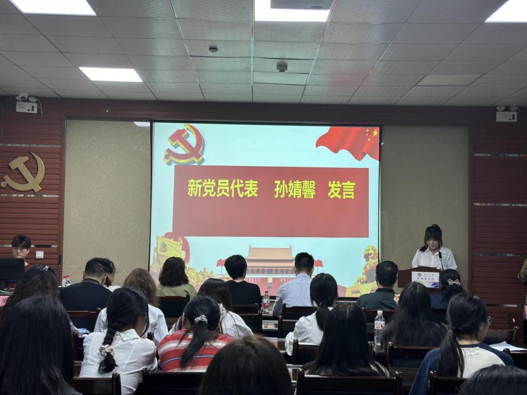 宣誓完毕后,周杰为新党员代表佩戴党徽,各党支部书记为新党员佩戴党徽。新发展党员孙婧馨作为代表发言。她表示将时刻牢记党的宗旨,以更加饱满的热情和更加务实的作风,积极投身到党和人民的伟大事业中去;将坚持全心全意为人民服务的根本宗旨,为人民群众谋利益、办实事,为党和人民的事业做出更大的贡献。