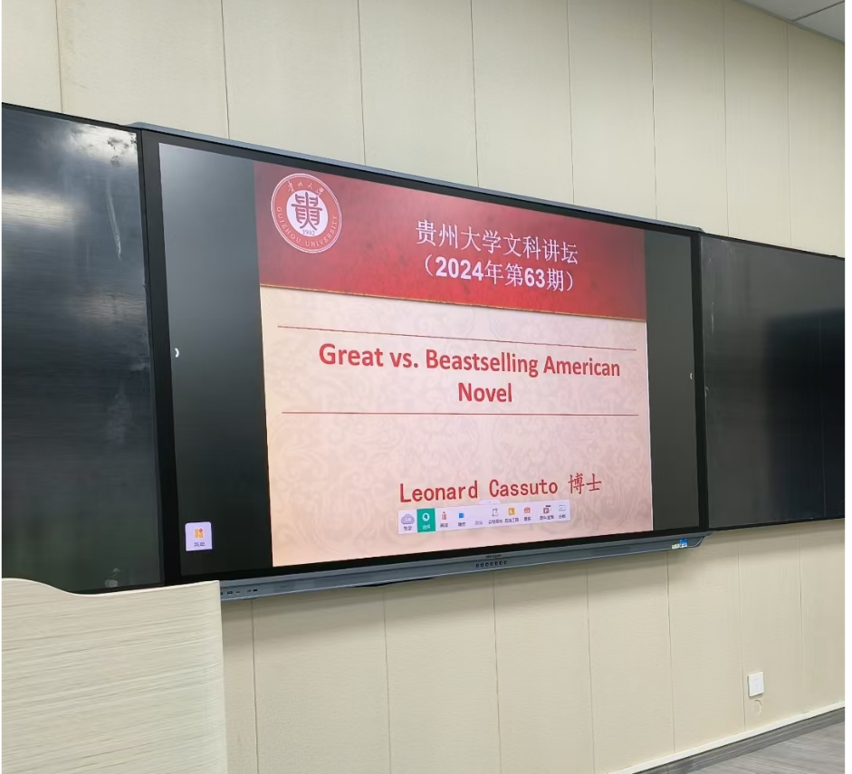 11月20日至22日,贵州大学文科讲坛第六十三期系列学术讲座于外语楼517教室举办。本次讲座特邀哈佛大学博士、福特汉姆大学英语系教授Leonard Cassuto主讲,分别以“Great vs. Bestselling American Novel”、“How to Write Well and Why We Must”、“US Higher Education in Search of an Ethic”为主题,讲述了“伟大的小说”与“畅销的小说”的差异,学术写作应如何思考,以及美国高等教育现状与伦理探寻,吸引了众多师生踊跃参与,现场气氛热烈。