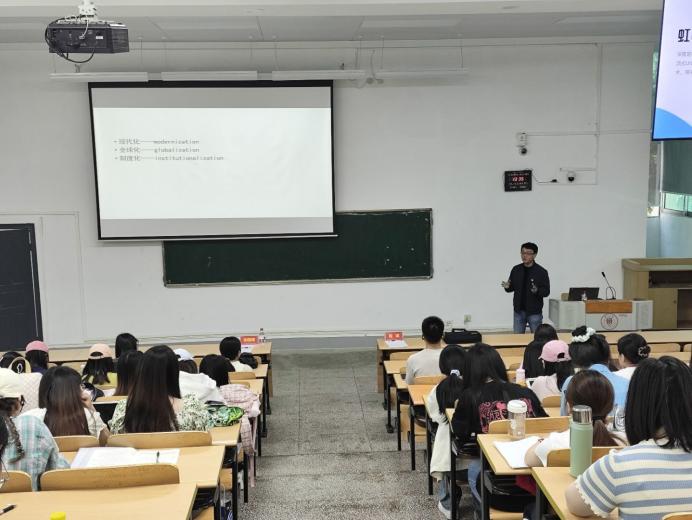 周斌以“负担新时代文化使命的必然要求”为题进行理论宣讲。他在讲解过程中,以春节档热门电影《哪吒之魔童闹海》为例,深入浅出地阐述了文化自信对民族和国家发展的重要意义。在探讨“理解文化兴则国运兴,文化强则民族强”这一话题时,现场气氛热烈,同学们纷纷结合自身角度和身份积极发言。周斌强调,作为新时代的知识青年和外国语学院的学生,同学们肩负着树立文化自信、传播中华文化的重要使命,应积极助力社会主义文化强国建设,提升我国文化软实力的国际影响力。