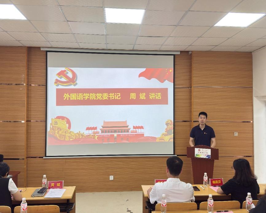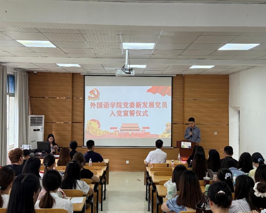 7月1日中午,外国语学院党委在东校区外语楼226室举行新发展党员入党宣誓仪式。外国语学院党委书记周斌,党委副书记、院长周杰,正处级组织员周乐成,党委副书记杨莉萍出席本次宣誓仪式。汉语国际教育硕士点研究生党支部等7