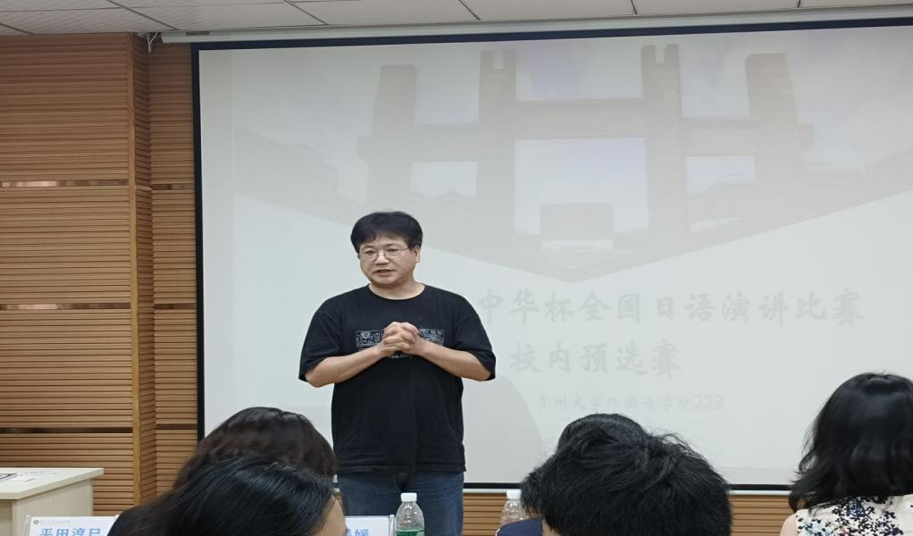 2025 年 9 月 19 日,第十九届中华杯全国日语演讲比赛贵州大学校内预选赛在外国语学院 223 教室举办。赛事由贵阳中日交流之窗承办,旨在提升学生日语能力、增强跨文化交际意识,为中日文化交流搭建平台。