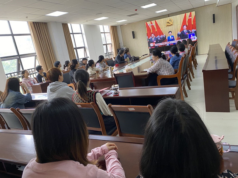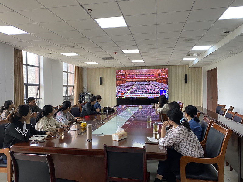 2022年4月25日,财务处组织全体职工集中收看中国共产党贵州省第十三次代表大会开幕式。