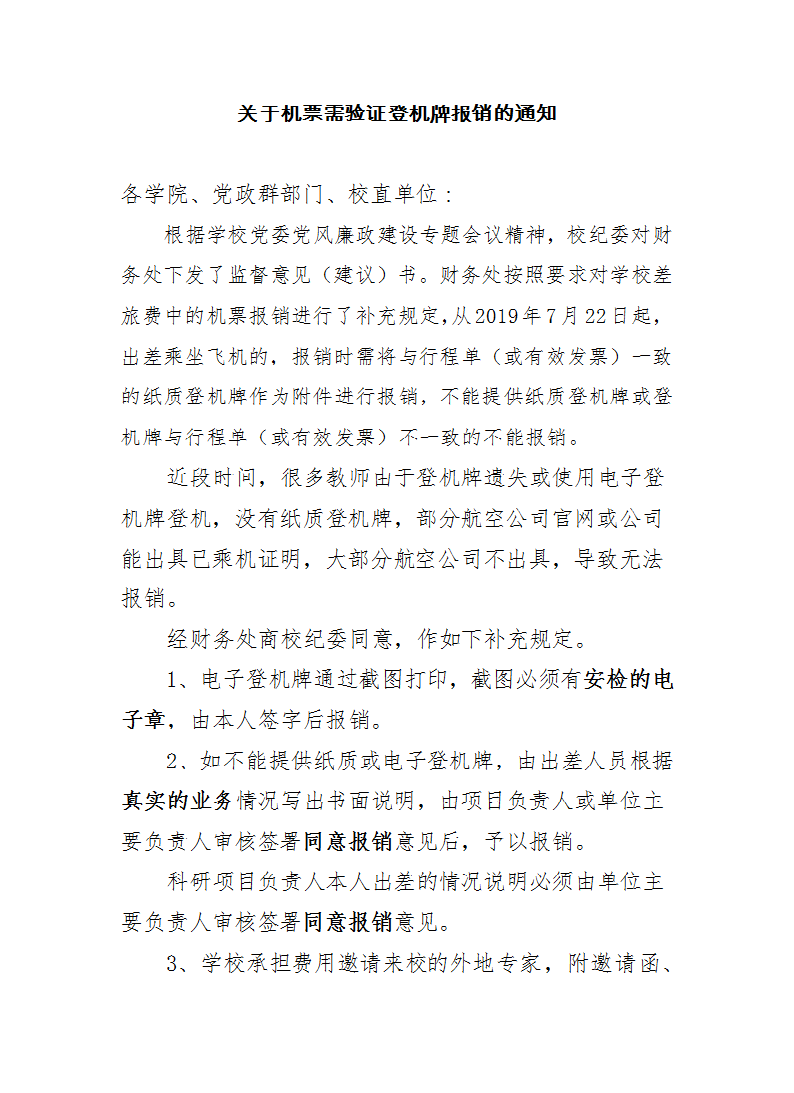 关于机票需验证登机牌报销的通知