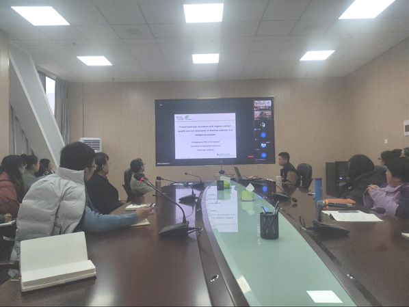 安正锋博士主要从“土壤有机碳质量和热量分析”为大家开展讲座,主要介绍了农林生态系统土壤有机质的稳定性、土壤碳氮循环等方面的相关研究进展。