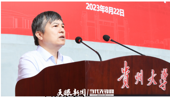 8月22日,贵州大学举行2023级新生开学典礼。开学典礼上,中国工程院院士、贵州大学校长宋宝安寄语大学生们,要勇担责任做“奋进者”、追求卓越做“实干家”、砥砺自我做“追梦人”。