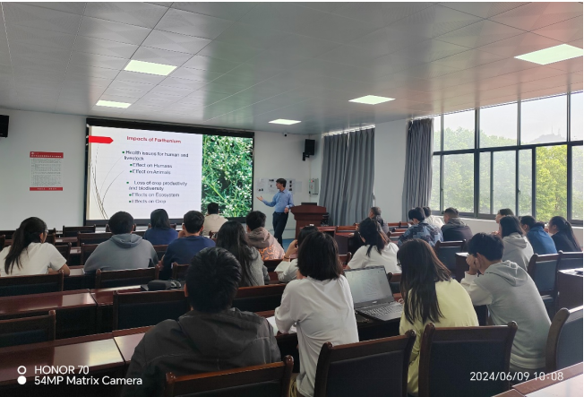 6月9日,Asad Ali教授为重点实验室师生作了题为《Classical biological control of invasive weed, Parthenium hysterophorus; A case study of Pakistan》(入侵杂草银胶菊的经典生物防治:以巴基斯坦为例)的学术报告。银胶菊(Parthenium hysterophorus),菊科银胶菊属的一年生草本植物,原产于美洲热带地区,属于危害性较大的杂草之一,至2020年,已入侵中国山东、福建、广东、广西、海南、香港等地。该草生于旷地、路旁、河边、荒地、喜中性和碱性的土壤,中国环境保护部2011年公布的第二批外来入侵植物银胶菊危害等级4级。银胶菊花粉具有毒性,会造成人体皮肤过敏、支气管炎,大量直接接触会引起皮肤发炎、红肿;此外,它体表的微细状体还含有银胶素,吸入过多可能造成对人的肝脏损害以及遗传病变。巴基斯坦、澳洲、印度都曾发现牛羊等性畜因大量接触银胶菊中毒死亡的案例。Asad Ali教授从银胶菊的起源与分布、生长发育特性、主要危害、绿色防控进展,以及目前面临的问题和未来研究方向进行了系统讲解。本次讲座是典型的关于以虫治草的生物防治案例,即阿根廷茎象甲(Listronotus setosipennis)防治银胶菊,据Asad Ali教授介绍,这也是首例在巴基斯坦成功应用的以虫治草案例,为采用以虫治草策略防治其他入侵性杂草提供了借鉴。本次讲座内容丰富、深入浅出,报告末尾,Asad Ali教授针对师生们的提问进行了详细的解答。