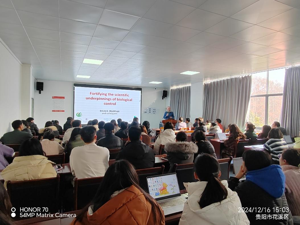 2024年12月14-16日,联合国粮食及农业组织(Food and Agriculture Organization of the United Nations,FAO)高级顾问、国际著名昆虫学家,亚洲和拉丁美洲独立研究顾问,蝶蛹咨询公司(Chrysalis Consulting)首席执行官、澳大利亚昆士兰大学荣誉兼职教授、福建农林大学“金山”学者、中国农业科学院植物保护研究所客座教授Kris A.G. Wyckhuys到访绿色农药全国重点实验室开展学术交流,12月16日下午在中心D-323会议室进行了题为《Fortifying the scientific underpinnings of biological control》(加强生物防治的科学基础)的学术报告。