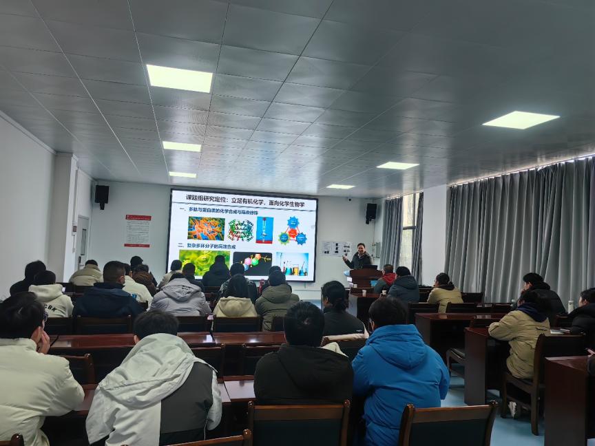 2024年12月24日,贵州大学绿色农药全国重点实验室邀请了广州医科大学—南山学者杰出教授、博士生导师赵军锋教授,以《多肽合成绿色化探索》为题,为贵州大学师生带来了精彩报告。赵军锋教授以炔酰胺和联烯酮作为基础的不消旋缩合试剂,提出了一种全新的多肽合成策略。这一策略相较于传统缩合剂,具有反应活性更高、反应速率更快、操作简便等显著优势,极大地推动了多肽合成领域的快速发展,解决了传统活化酯方法中反应步骤烦琐、原子经济性差以及氨解反应速率较慢等瓶颈问题。炔酰胺和联烯酮兼具传统缩合剂与活化酯方法的优点,并有效规避了二者的不足,在创制了多肽合成新方法(如N到C逆向多肽合成)表现出优异的活性和选择性,该方法的提出为多肽合成领域的高效、绿色化发展提供了新思路,并且有望为药物合成和农药分子设计中的相关应用开辟新的方向。