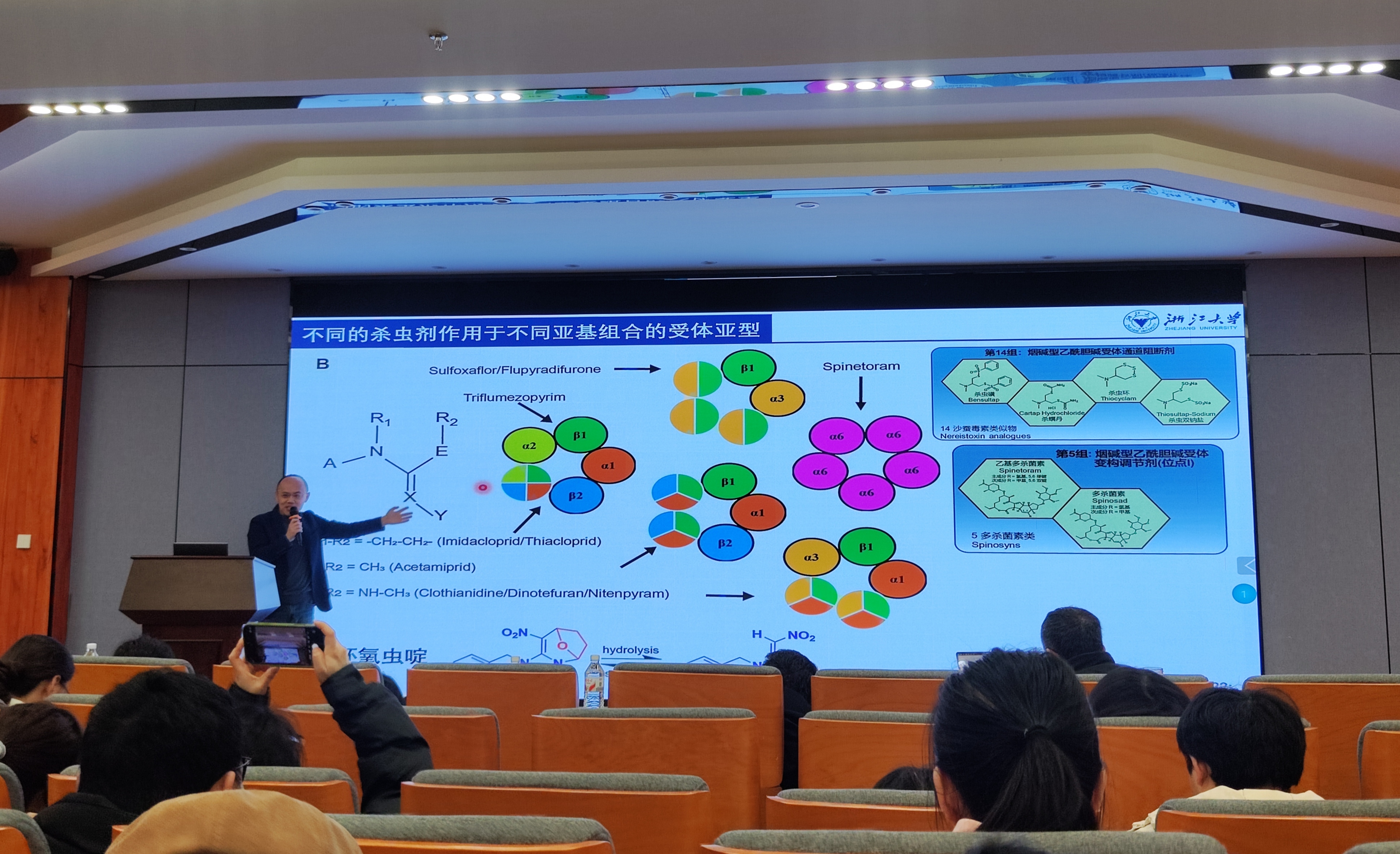 2026年1月30日,浙江大学昆虫科学研究所黄佳教授受邀为贵州大学绿色农药全国重点实验室师生带来题为“杀虫剂的分子靶标研究进展”的高水平学术前沿报告。黄佳教授通过系统介绍杀虫剂作用机制的前沿动态,结合团队在靶标发现与作用机制解析中的突破,为在场师生呈现了一场极具学术深度的精彩报告。