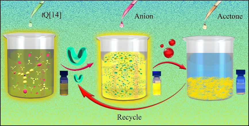 图4:AIE超分子聚合物的形成过程对废水中阴离子去除的示意图