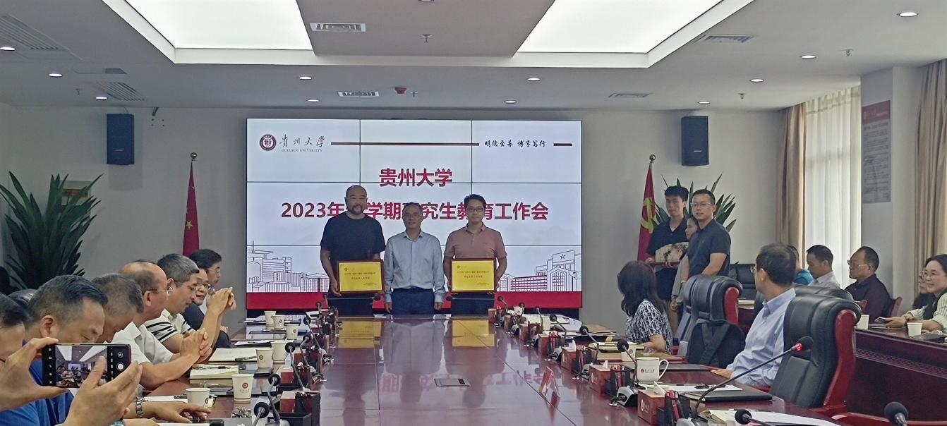 会上,李飞副校长为荣获“贵州大学2022年度研究生教育管理质量奖”的研究生培养单位颁奖,表彰他们在上年度研究生招生、培养、育人和学科建设工作中的突出贡献。