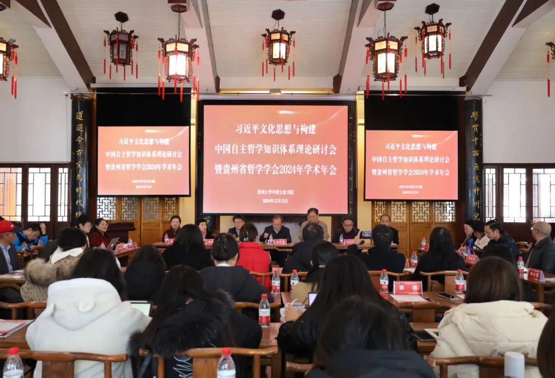 2024年12月15日,习近平文化思想与构建中国哲学自主知识体系理论研讨会暨贵州省哲学学会2024年学术年会在贵州大学中国文化书院举行。本次会议由贵州省哲学学会主办,贵州大学哲学学院、中国共产党人“心学”与推进党的建设新的伟大工程高端智库承办,来自贵州省委党校、贵州社会科学院、贵州省社科院《贵州社会科学》杂志社、贵州大学、贵州师范大学、贵州财经大学、贵州中医药大学、六盘水师范学院、遵义师范学院、贵阳学院、凯里学院、铜仁学院、茅台学院等全省各高校和机构的专家学者、师生100余人参加了会议。